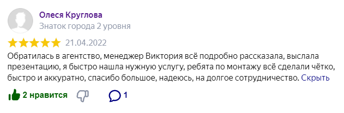 Отзыв оставленный о нашей компании в независимых источниках.